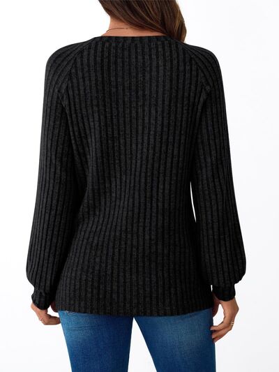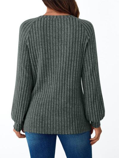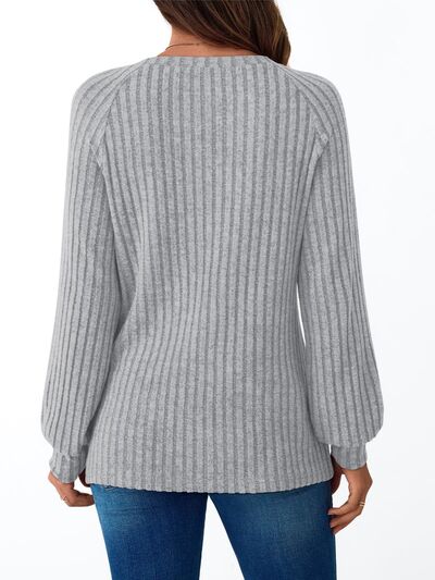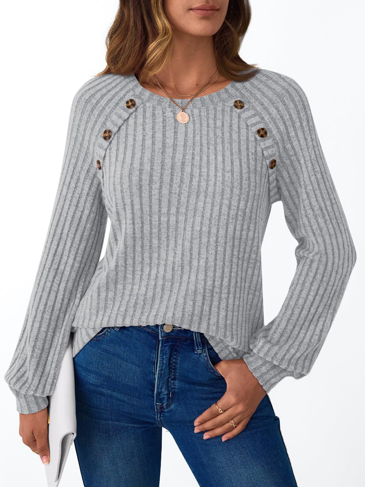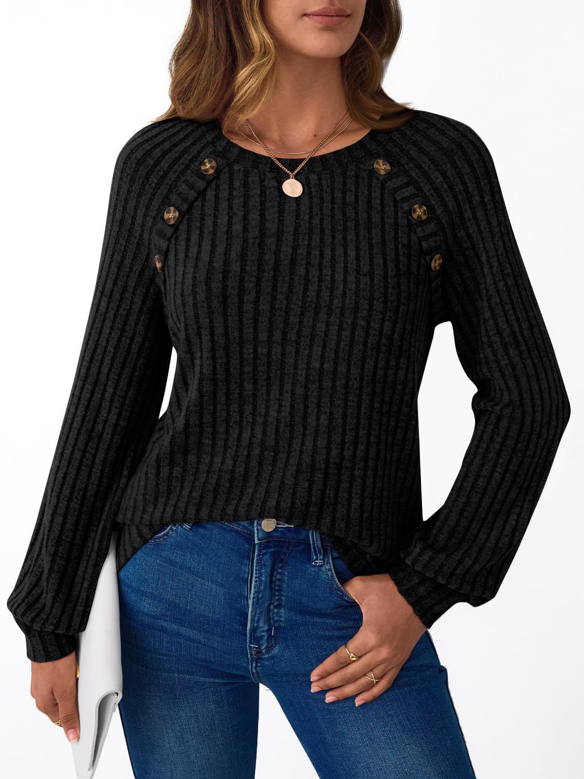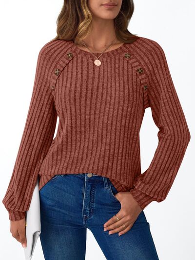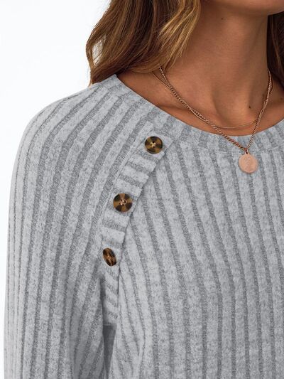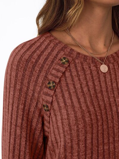 Ribbed Knit Decor Button Long Sleeve T-Shirt