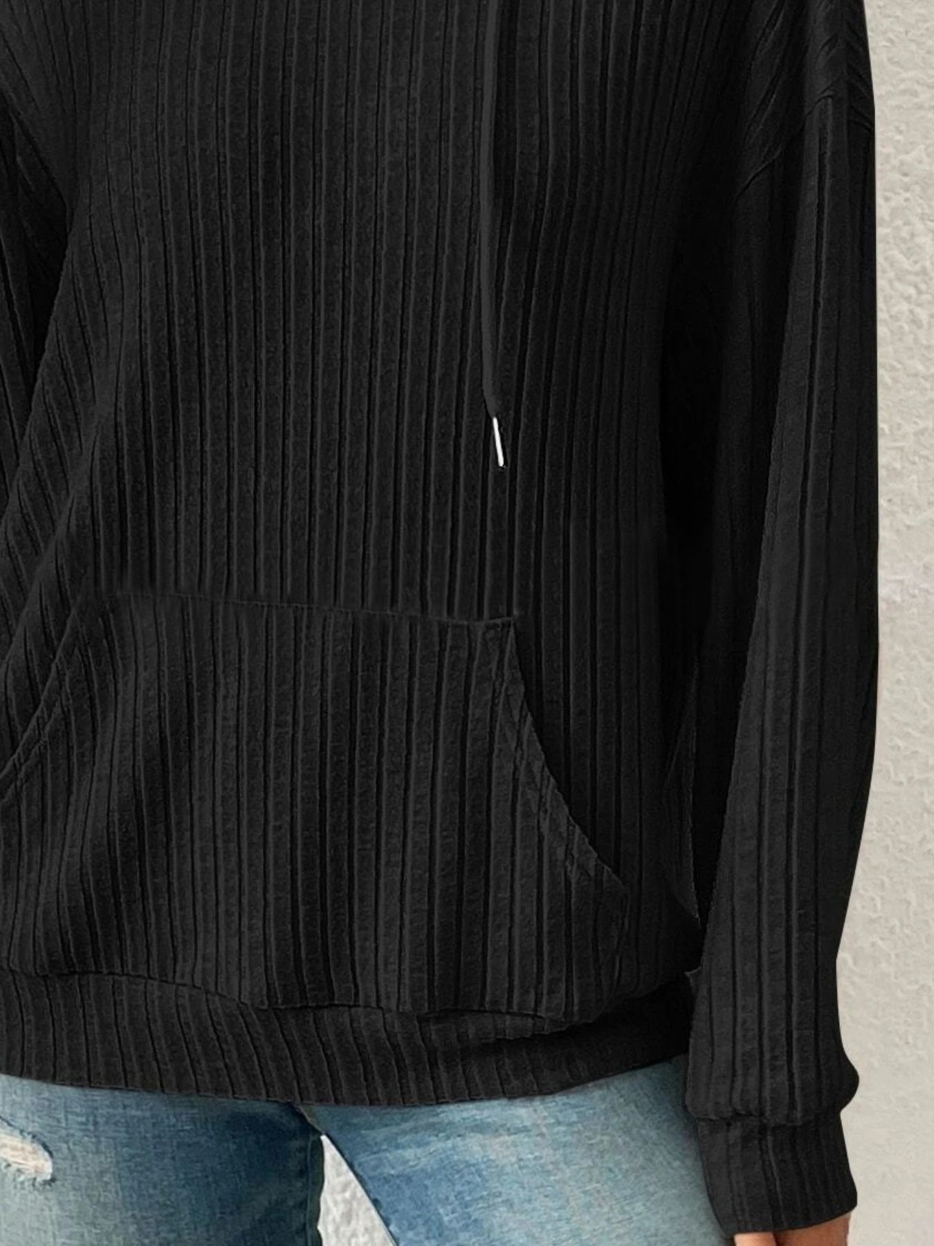 Ribbed Knit Long Sleeve Drawstring Hoodie