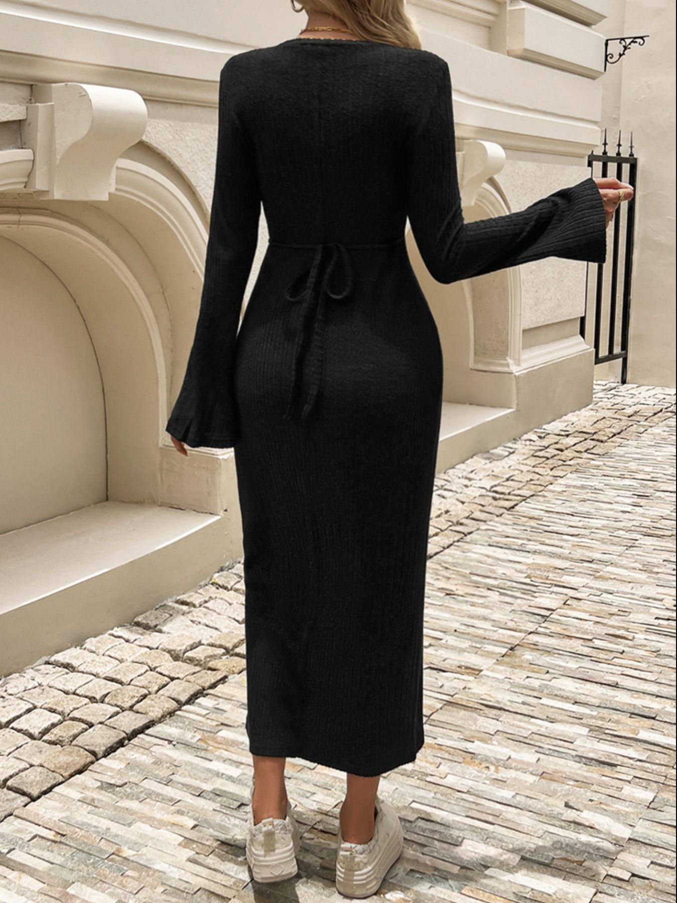Ribbed Knit Long Sleeve Midi Dress
