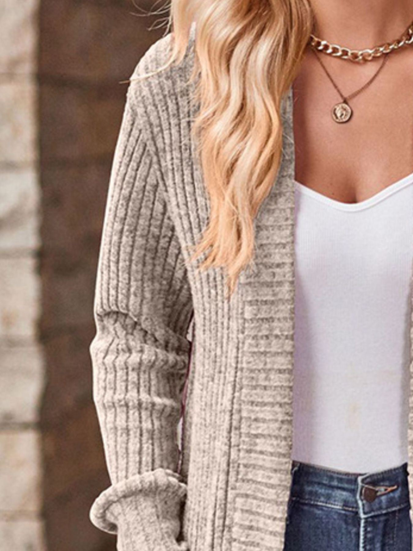Ribbed Knit Open Front Cardigan with Pockets