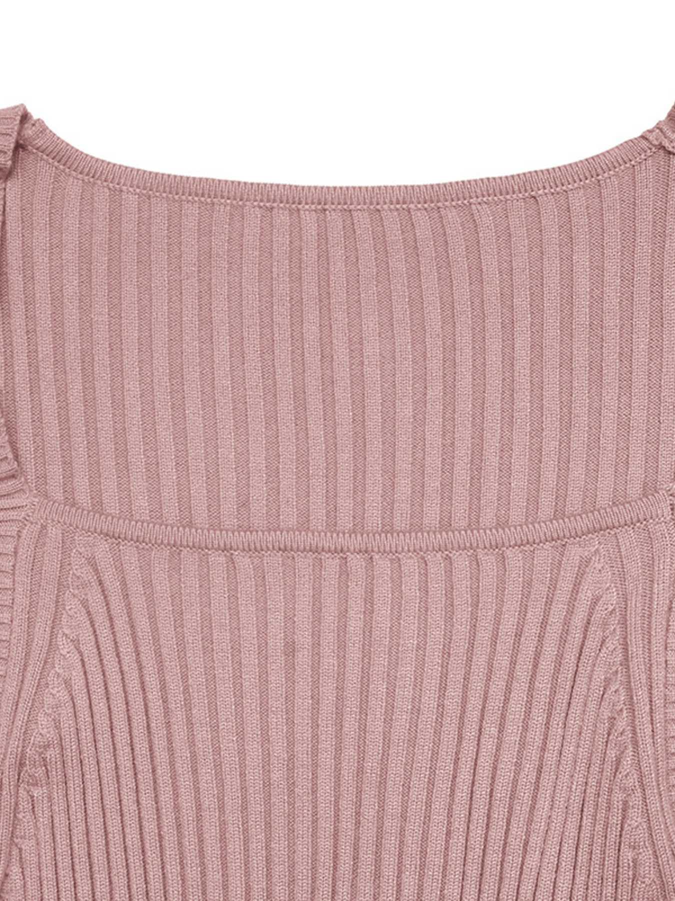Ribbed Knit Square Neck Bodycon Sweater Dress