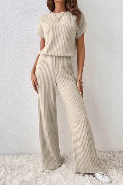 Ribbed Knit Wide Leg Jumpsuit