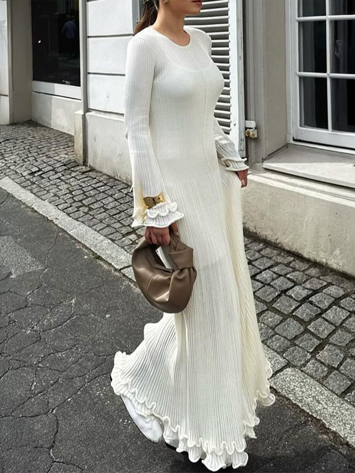 Ribbed Long Sleeve Dress with Ruffle Hem