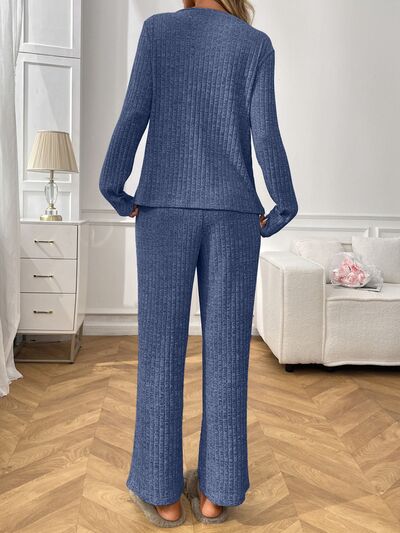 Ribbed Long Sleeve Top and Pants Lounge Set