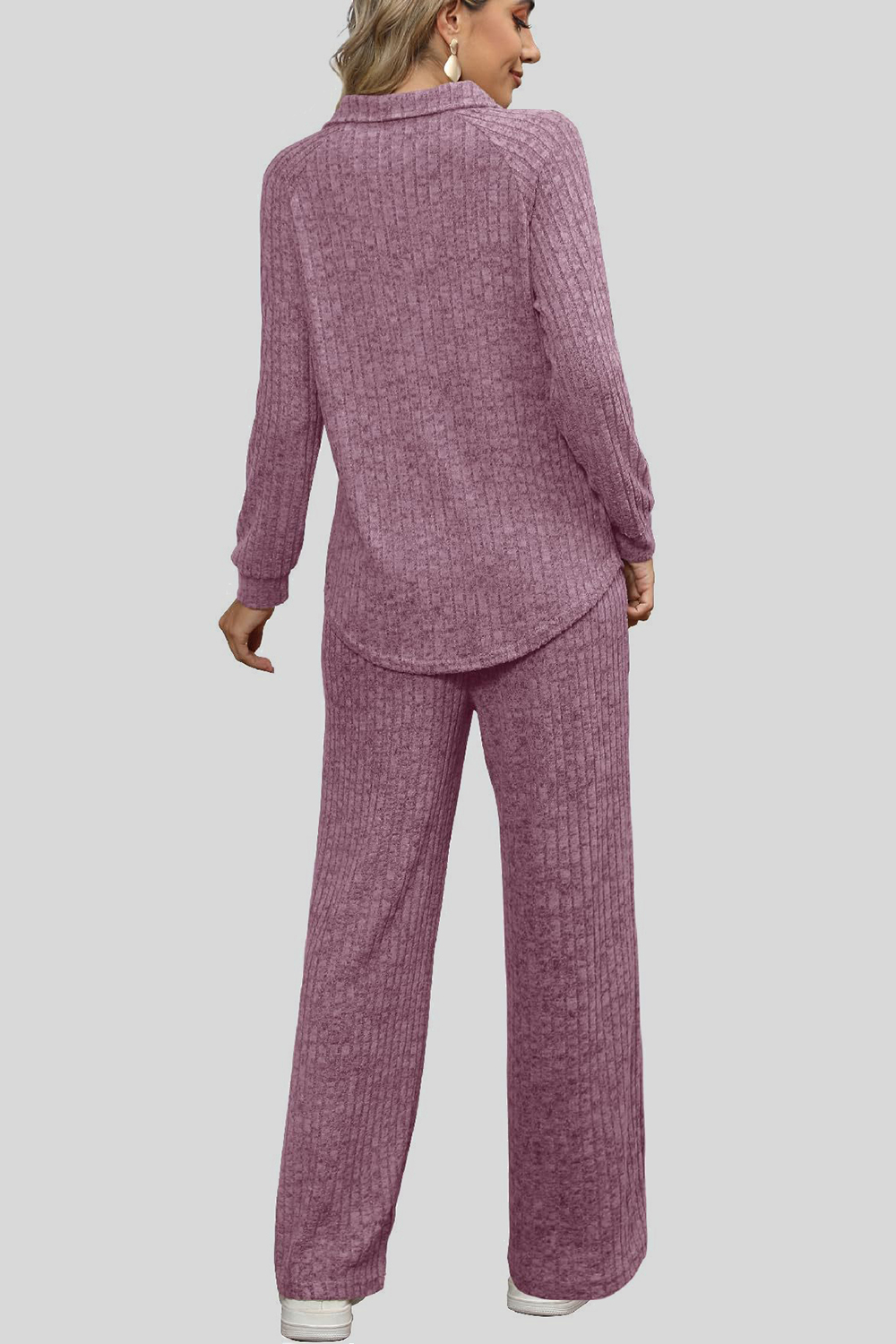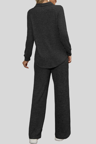 Ribbed Long Sleeve Top and Pocketed Pants Set