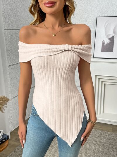 Ribbed Off-Shoulder Asymmetrical Hem T-Shirt