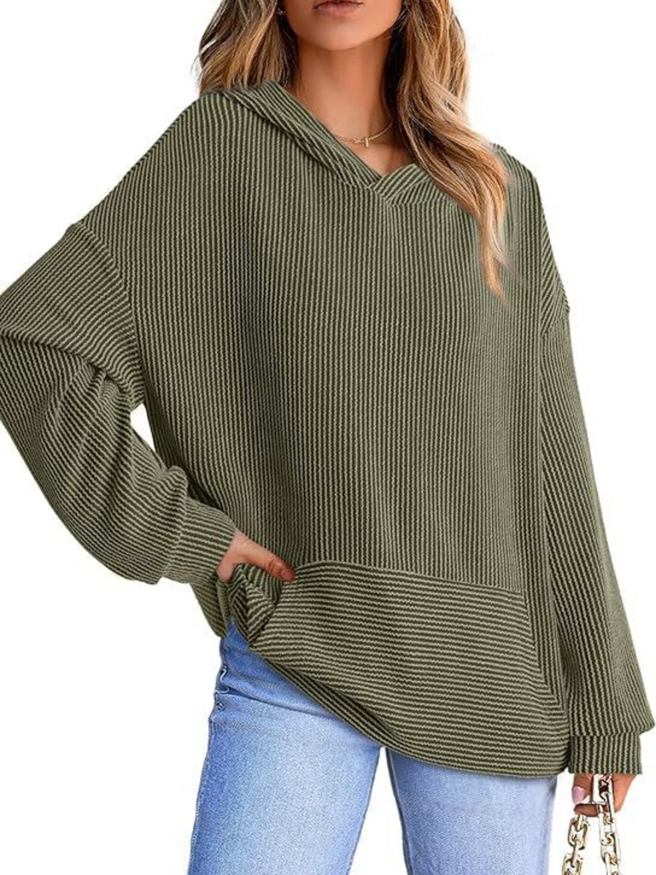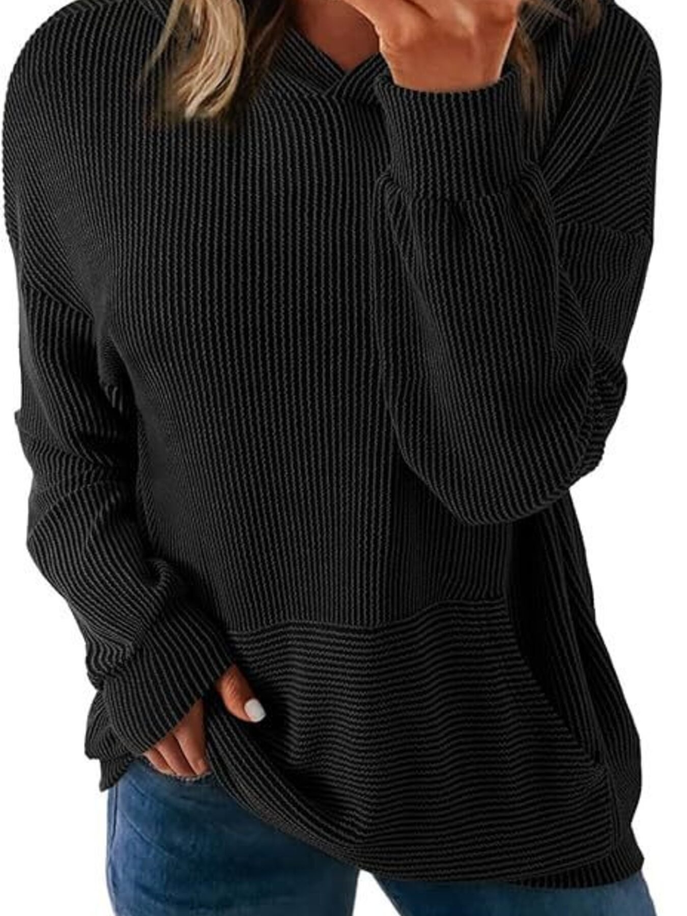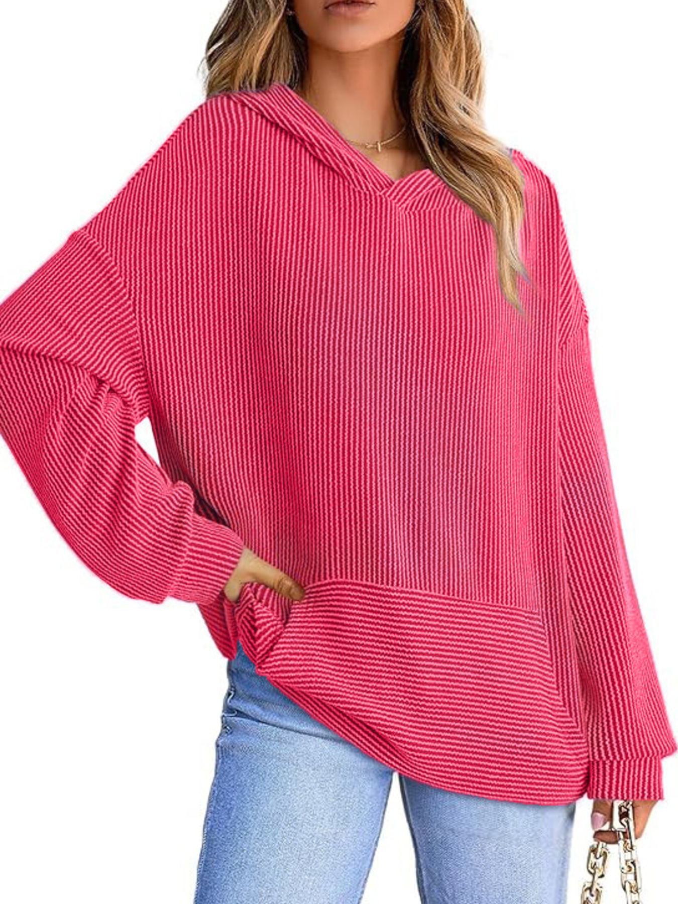 Ribbed Oversized Hoodie Sweatshirt with Pocket