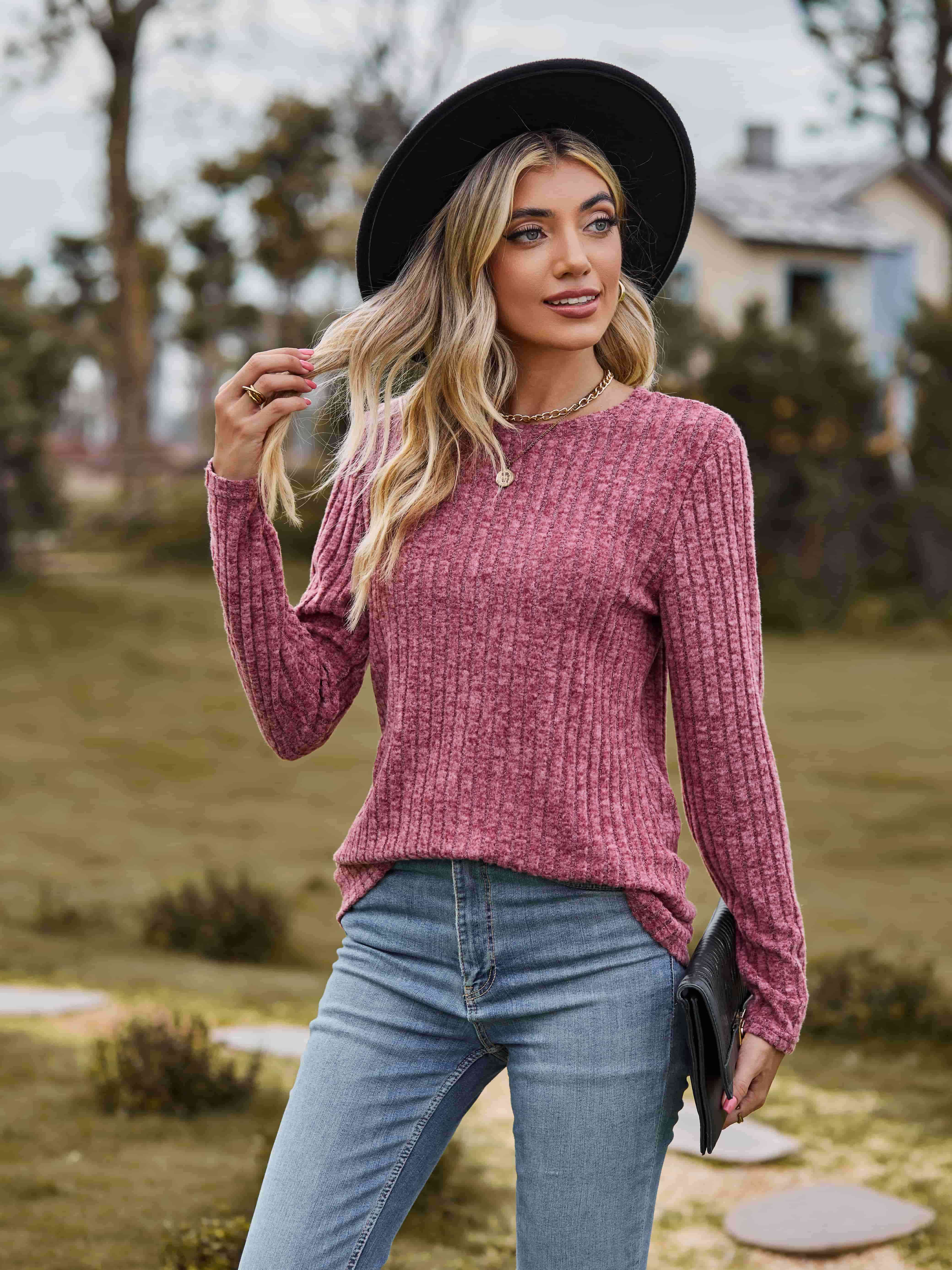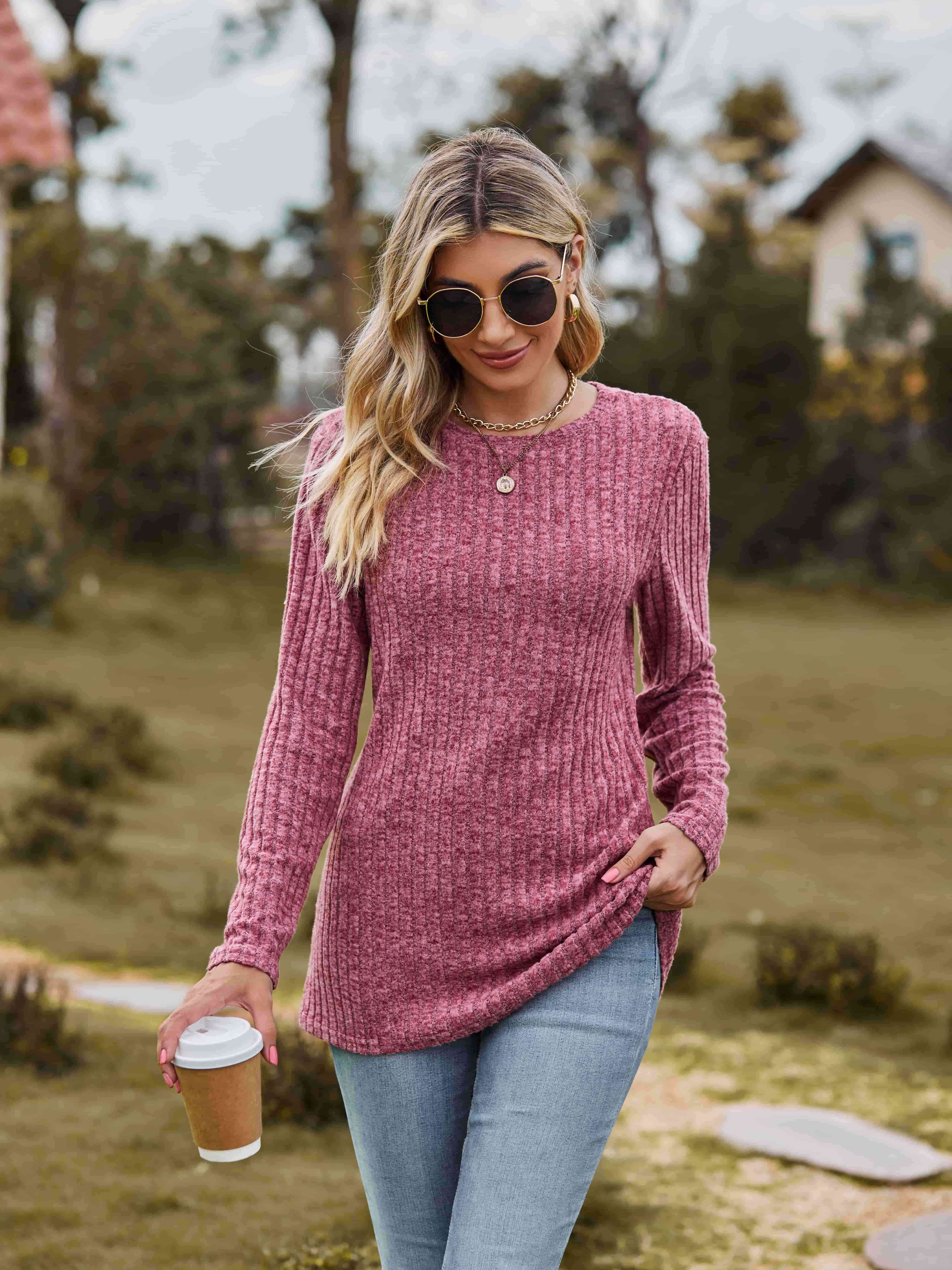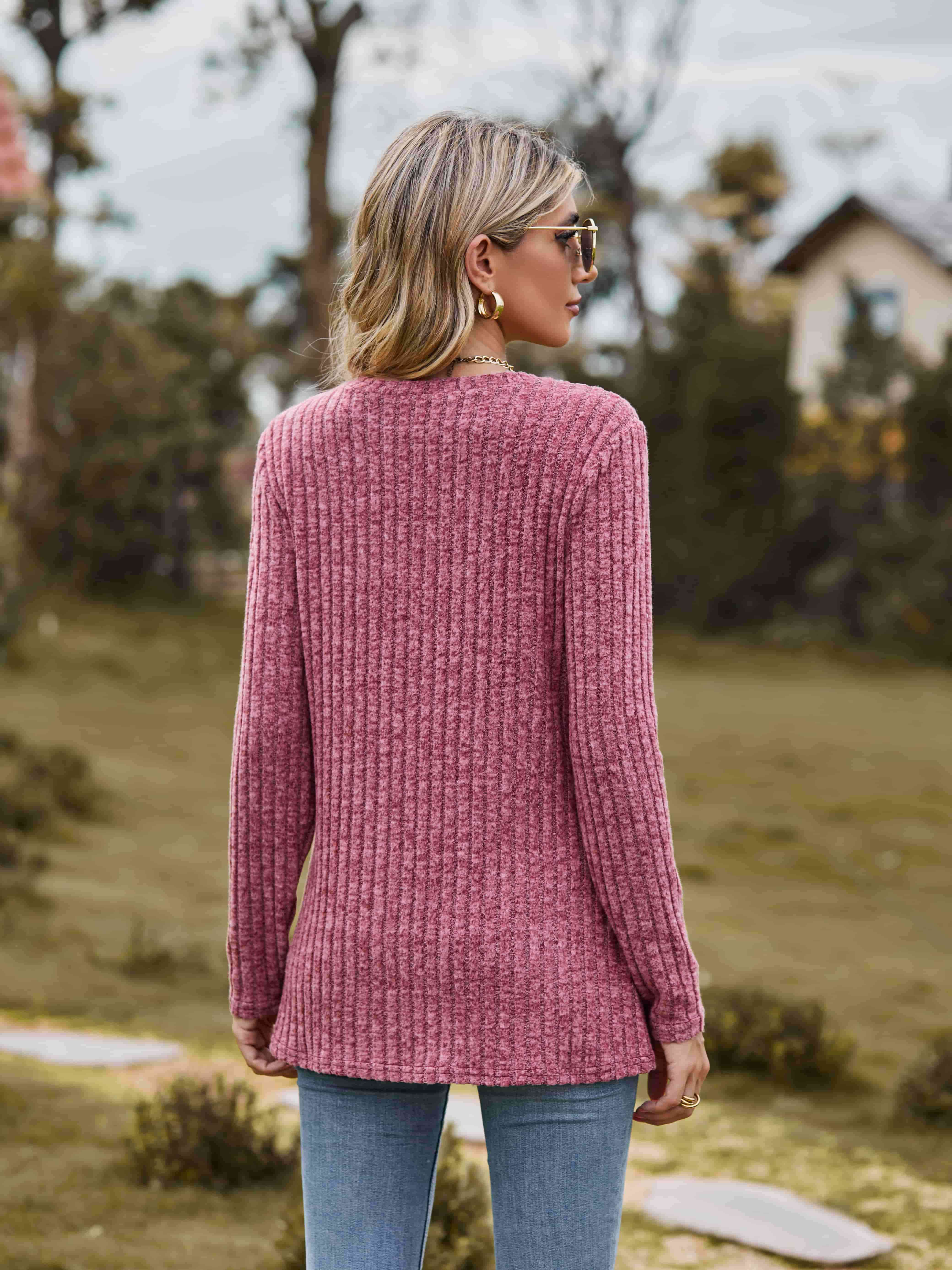 Ribbed Round Neck Long Sleeve Tee