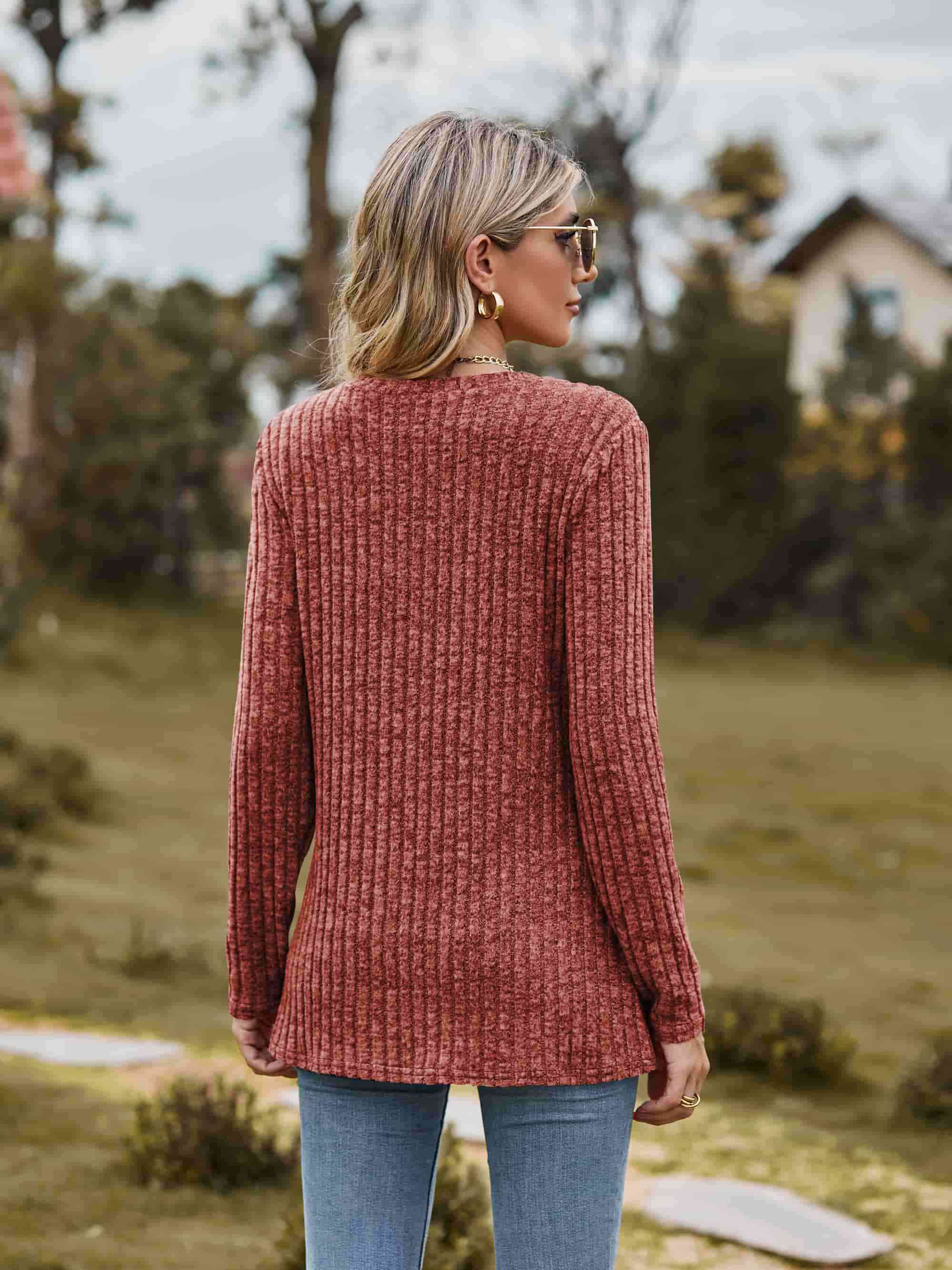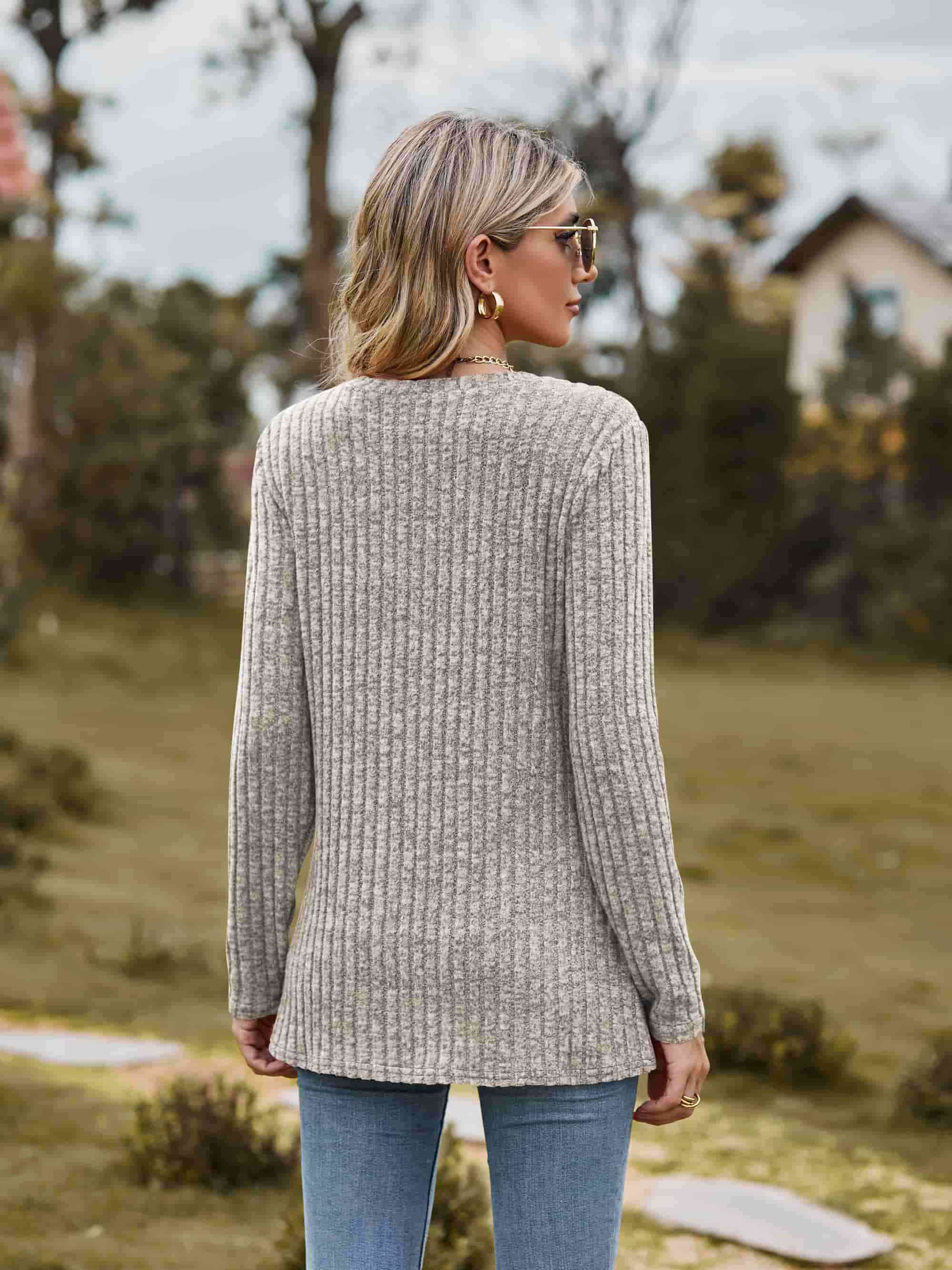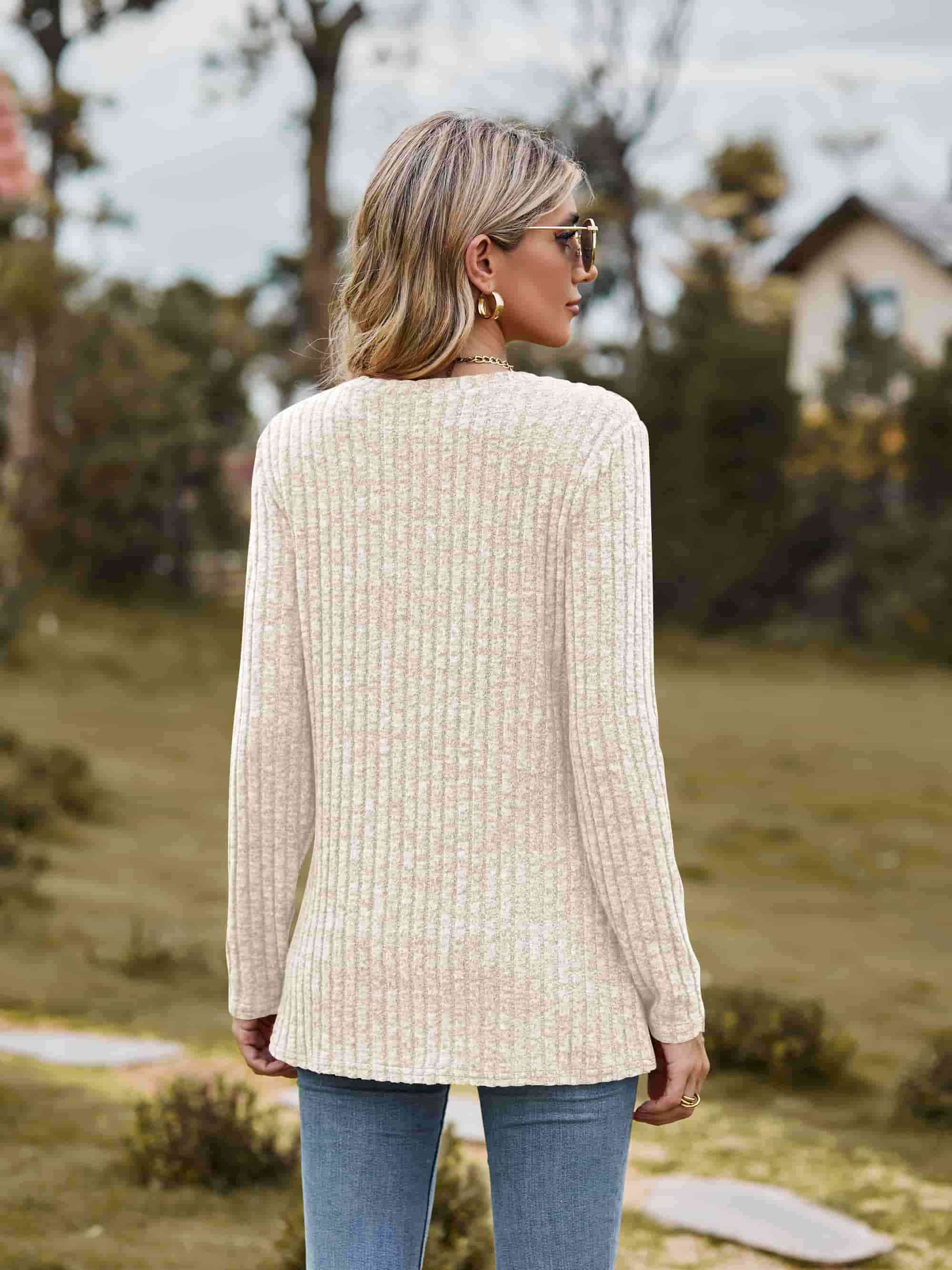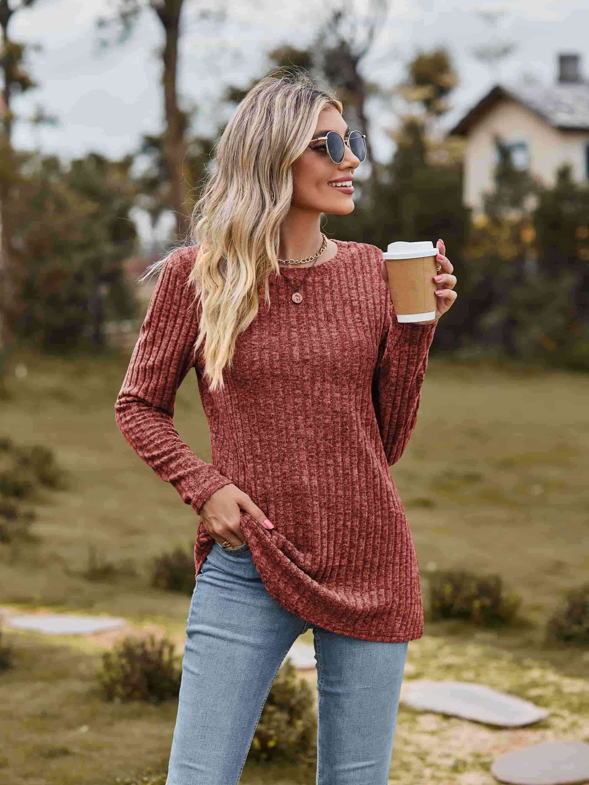 Ribbed Round Neck Long Sleeve Tee