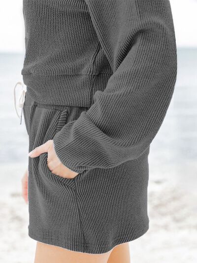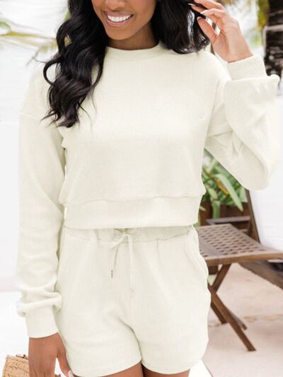 Ribbed Round Neck Long Sleeve Top and Shorts Set