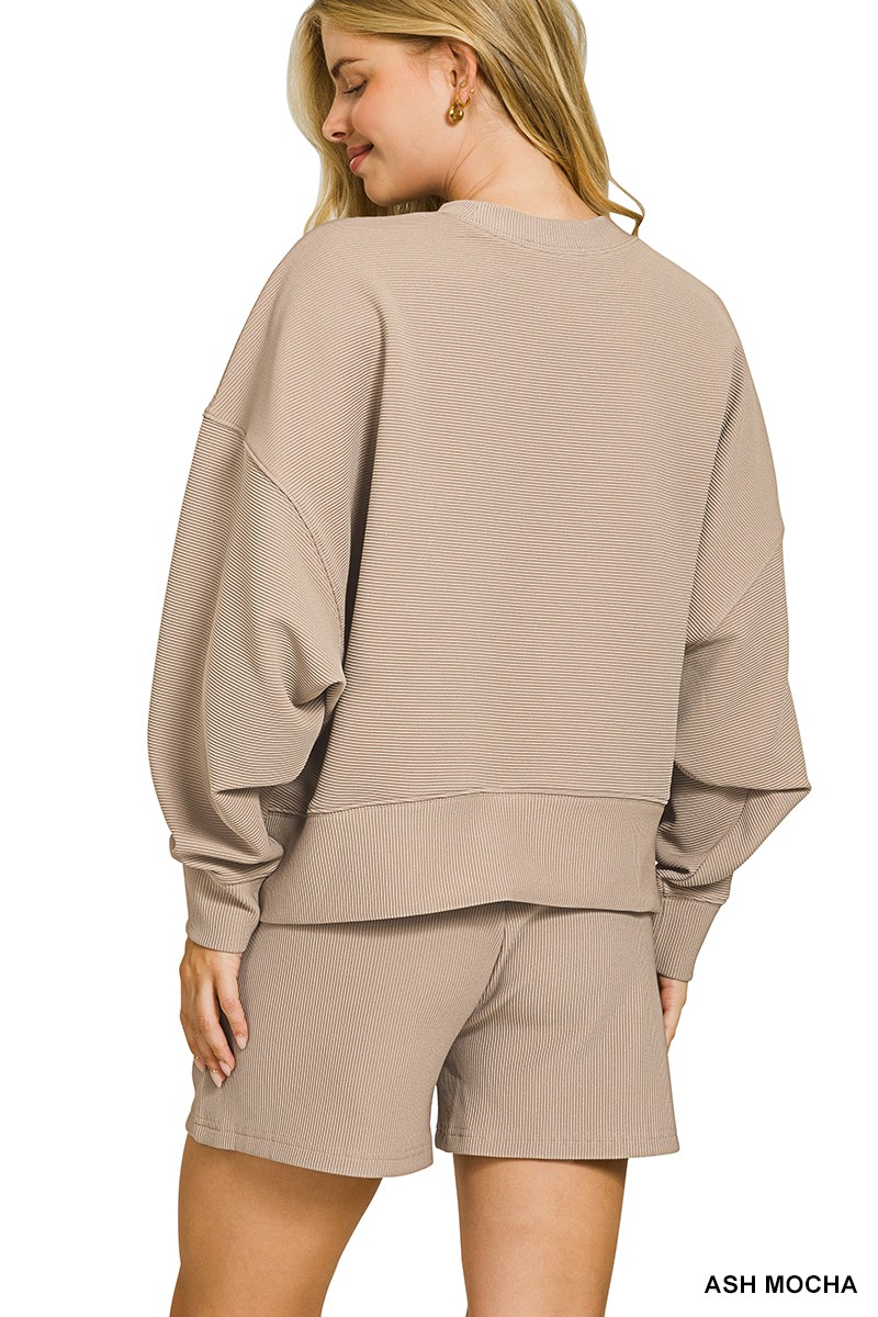 Ribbed Round Neck Pullover and Shorts Set
