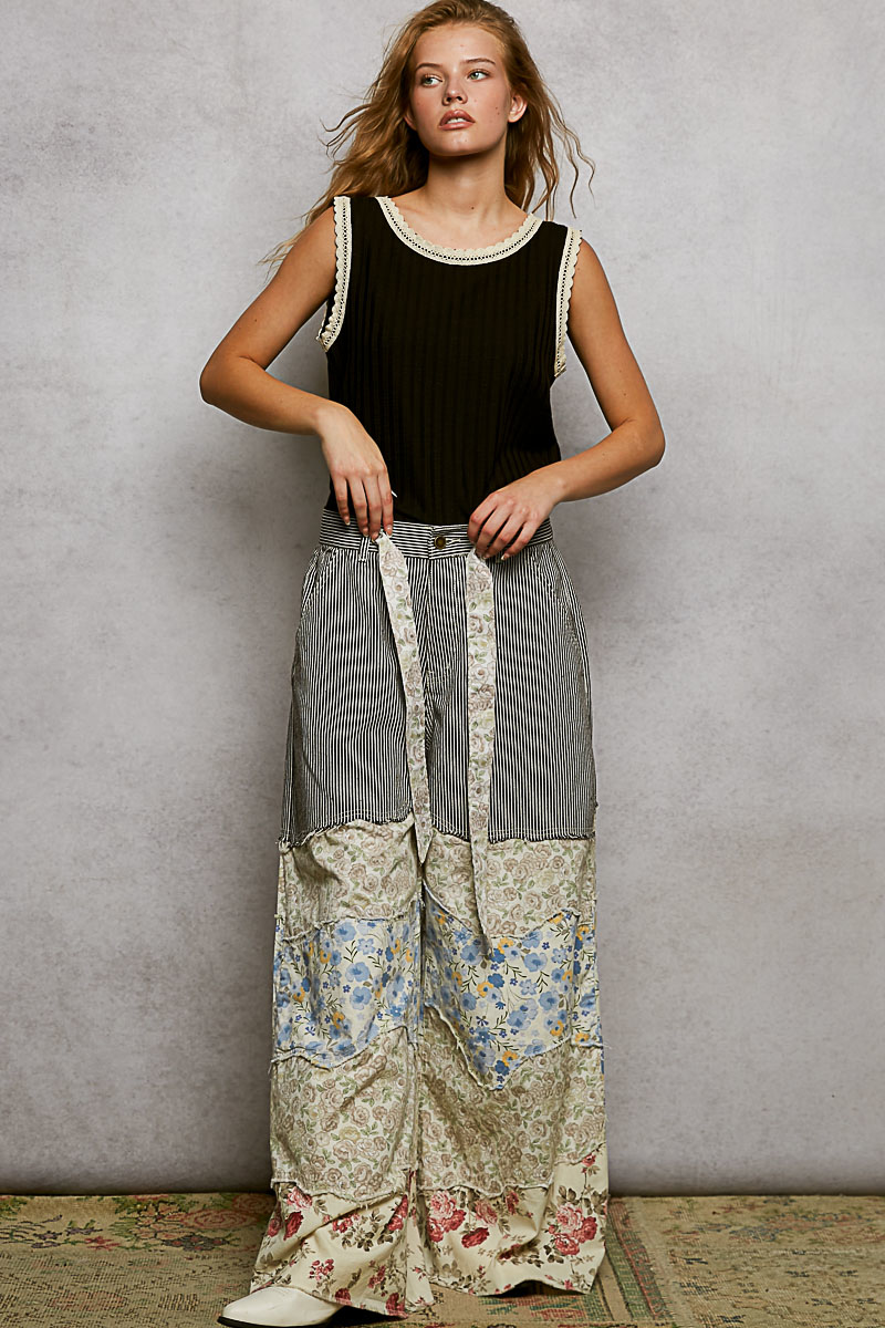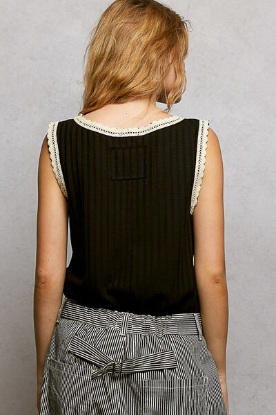Ribbed Round Neck Tank with Lace Trim