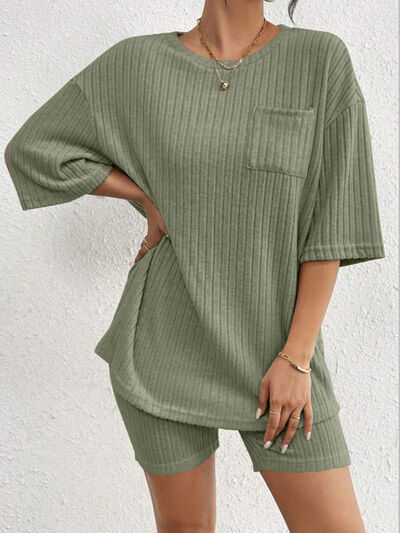 Ribbed Round Neck Top and Shorts Set