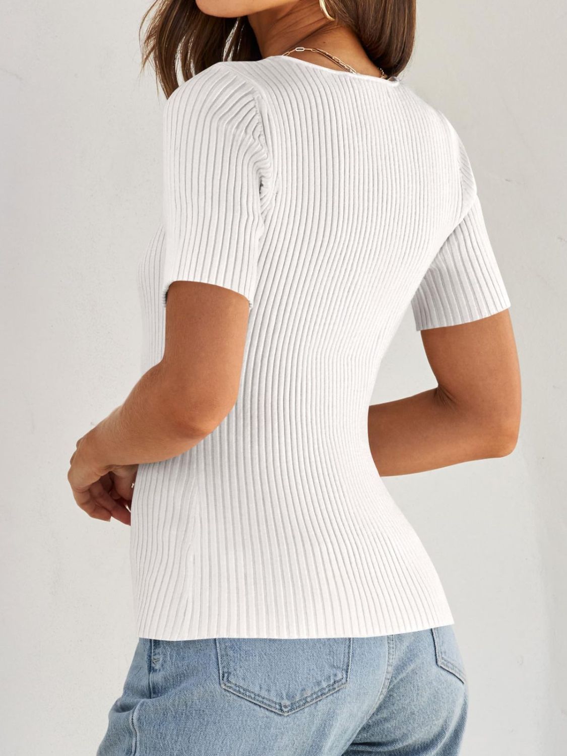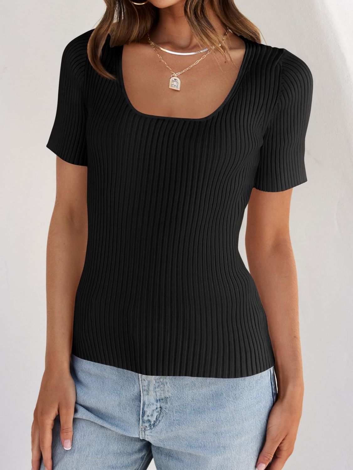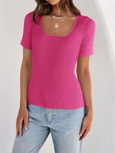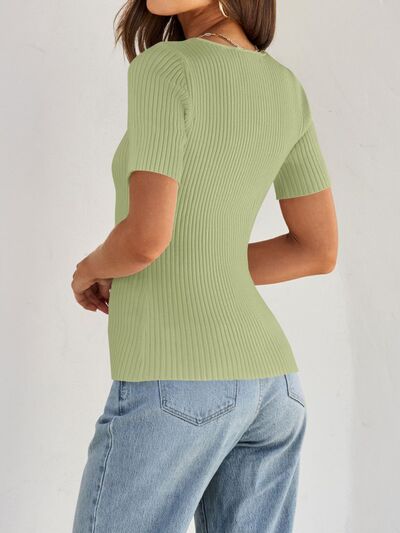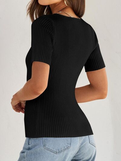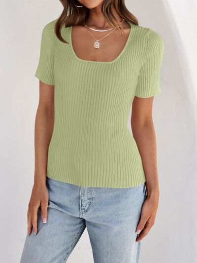 Ribbed Square Neck Short Sleeve Knit Top