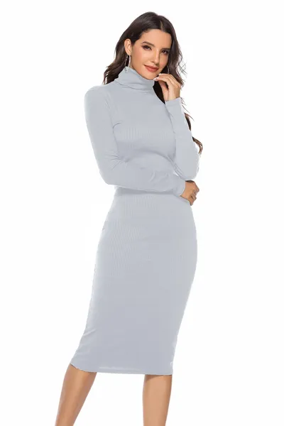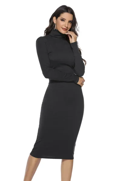 Ribbed Turtleneck Long Sleeve Dress