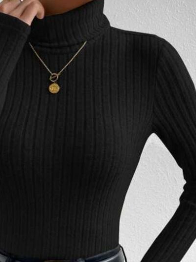 Ribbed Turtleneck Long Sleeve T-Shirt