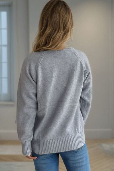 Ribbed Turtleneck Raglan Sleeve Sweater