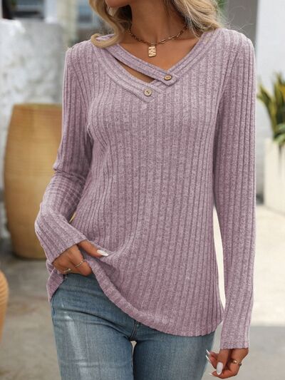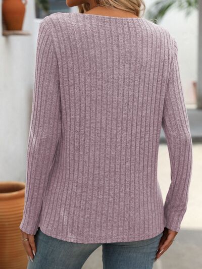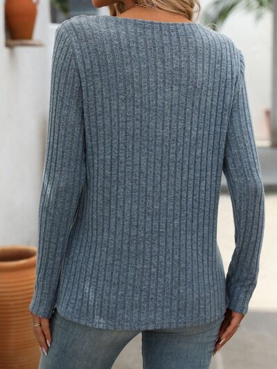 Ribbed V-Neck Long Sleeve T-Shirt