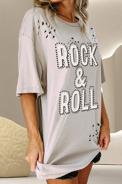 ROCK & ROLL Round Neck Dropped Shoulder T-Shirt