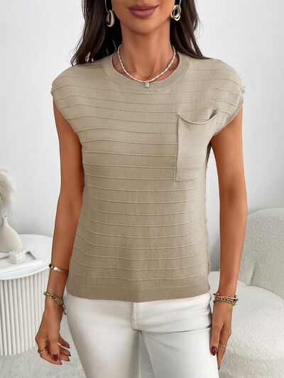 Round Neck Cap Sleeve Knit Top