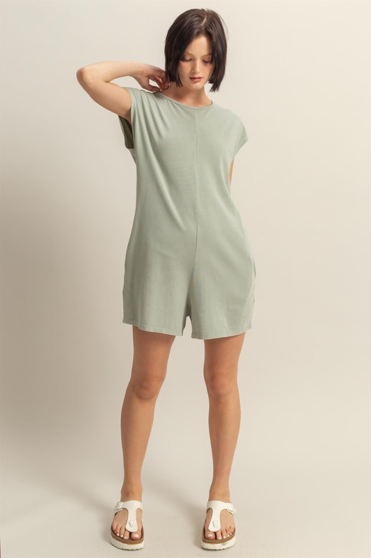 Round Neck Cap Sleeve Relaxed Fit Breezy Romper