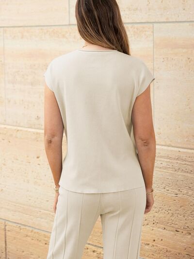 Round Neck Cap Sleeve Top and Pants Knit Set