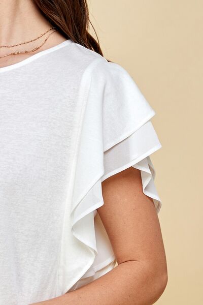 Round Neck Double Ruffle Cap Sleeve Top