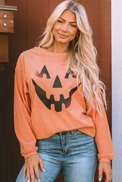 Round Neck Dropped Shoulder Jack-O'-Lantern Graphic Sweatshirt