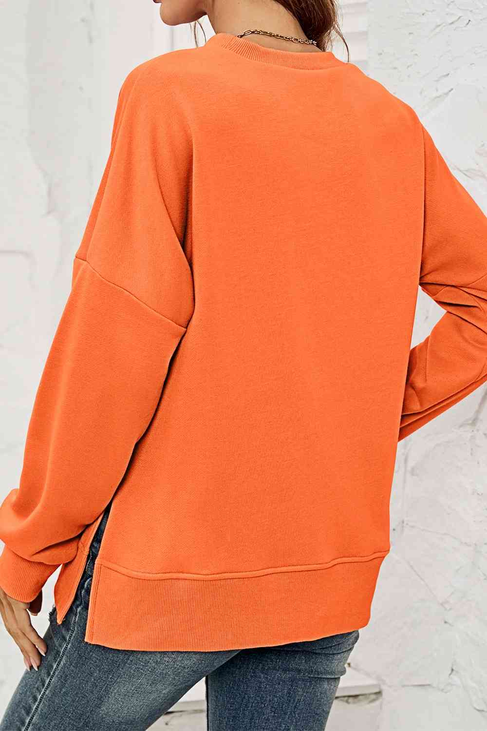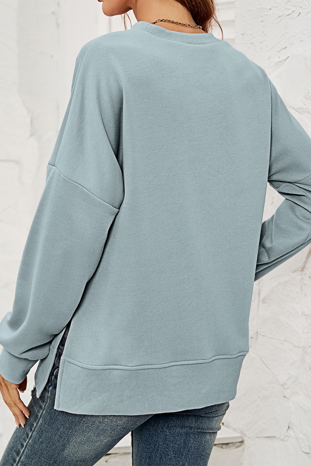 Round Neck Dropped Shoulder Slit Sweatshirt