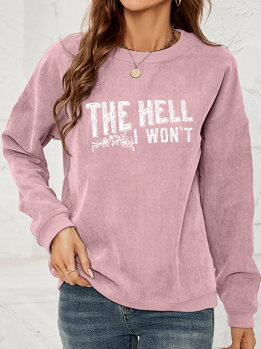 Round Neck Dropped Shoulder THE HELL I WON'T Graphic Sweatshirt