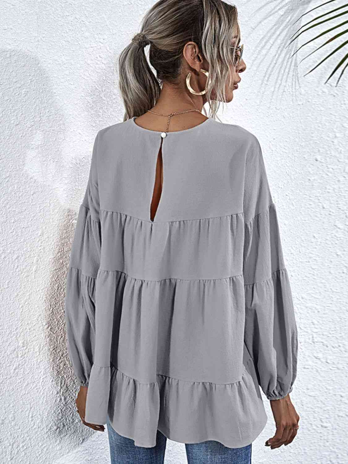 Round Neck Dropped Shoulder Tiered Blouse