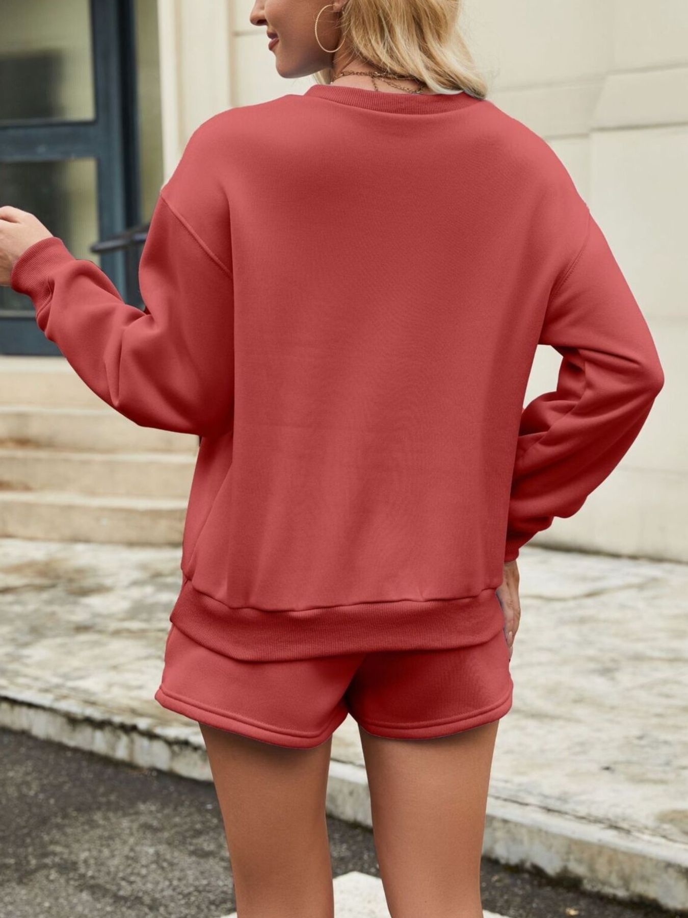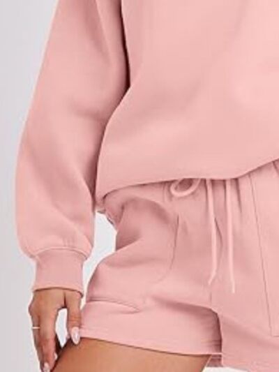 Round Neck Dropped Shoulder Top and Drawstring Shorts Set