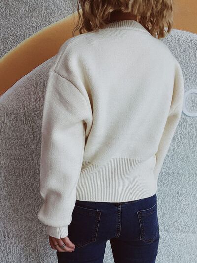 Round Neck Half Zip Long Sleeve Sweater