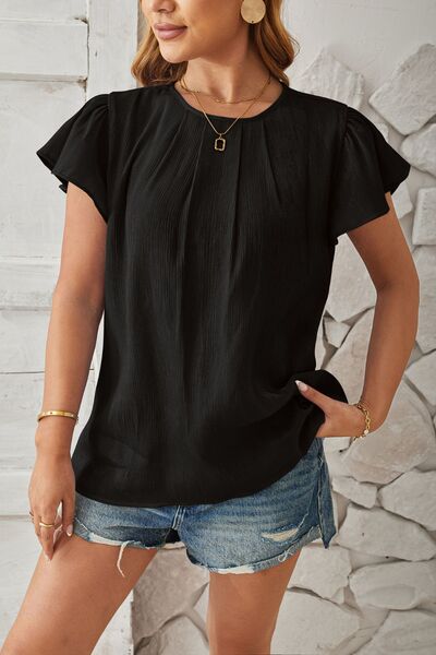 Round Neck Keyhole Cap Sleeve T-Shirt
