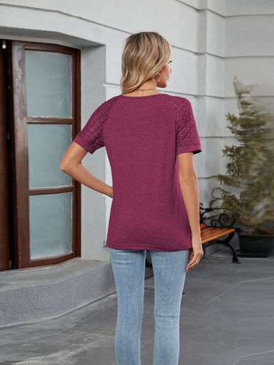 Round Neck Lace Short Sleeve T-Shirt