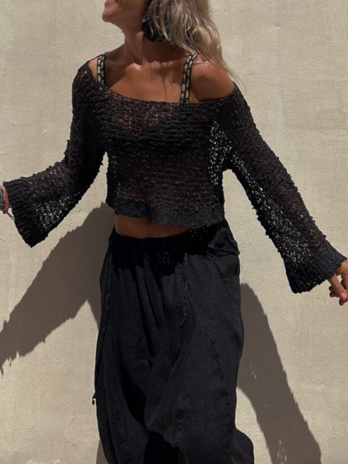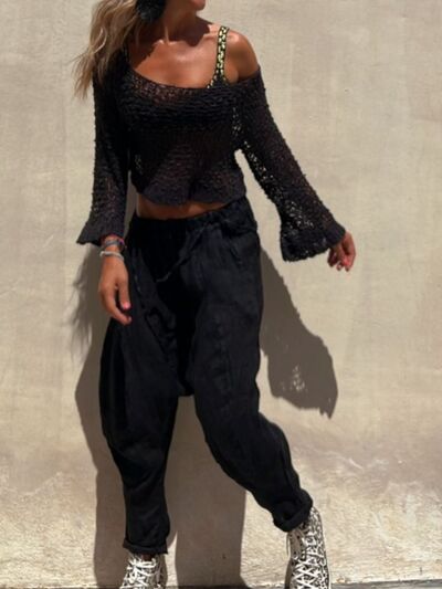 Round Neck Long Sleeve Knit Cover Up