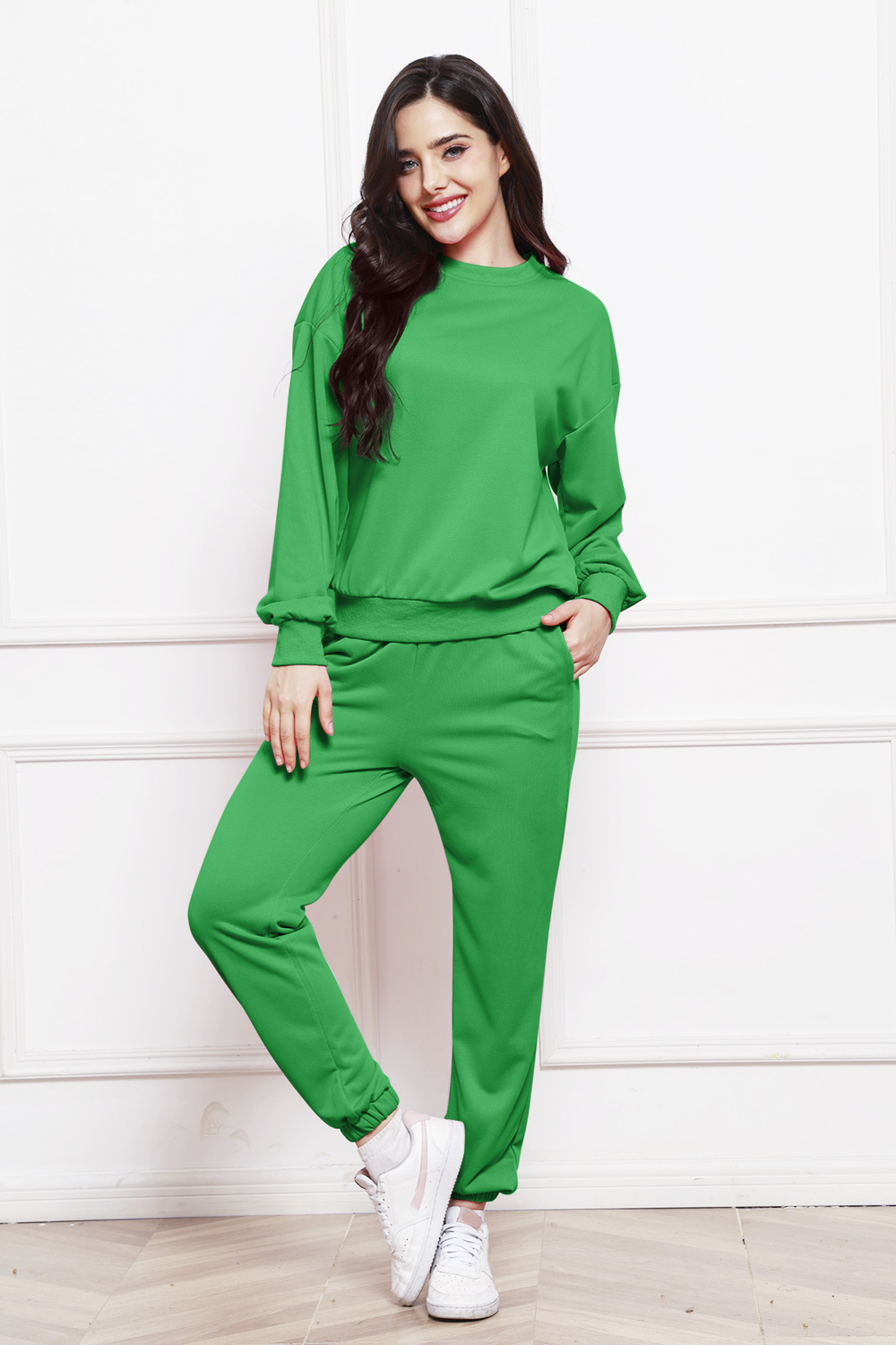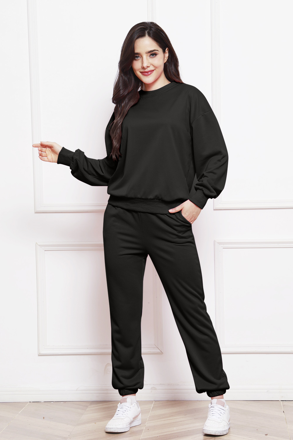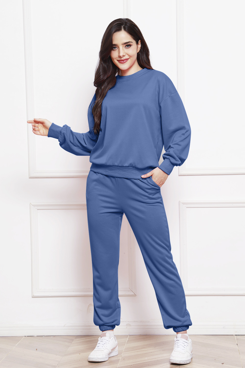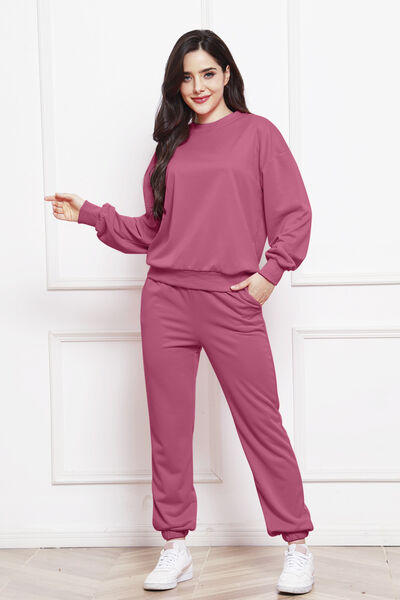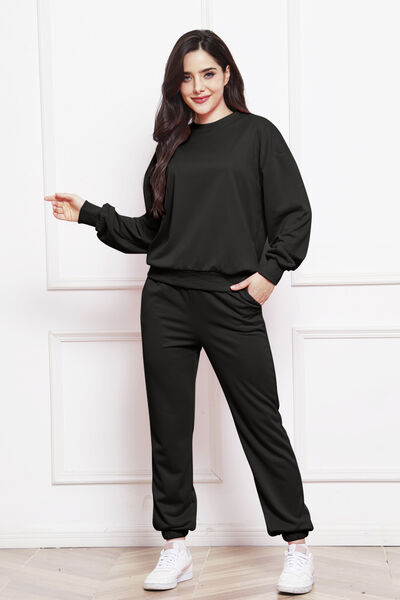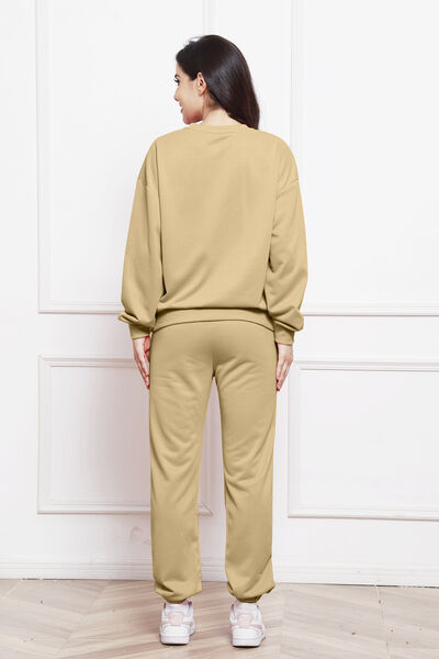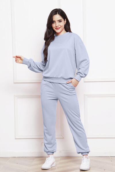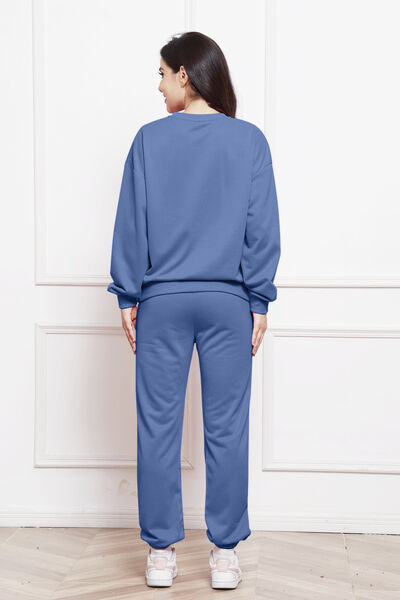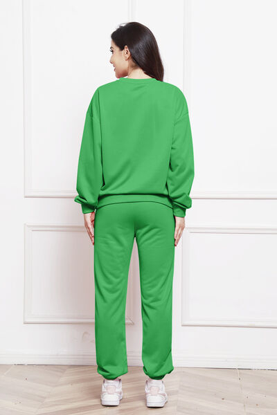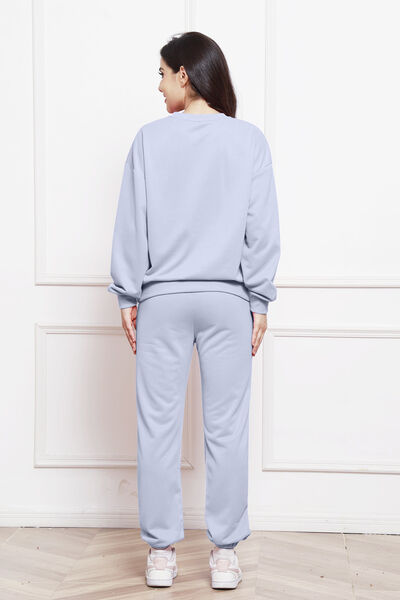 Round Neck Long Sleeve Sweatshirt and Pants Set
