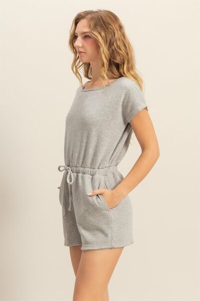 Round Neck Short Sleeve Drawstring Waist Romper