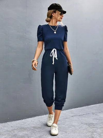 Round Neck Short Sleeve Jumpsuit