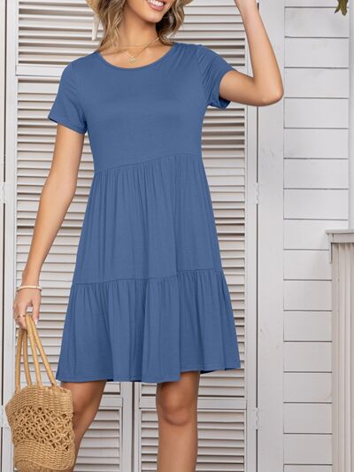 Round Neck Short Sleeve Mini Tee Dress