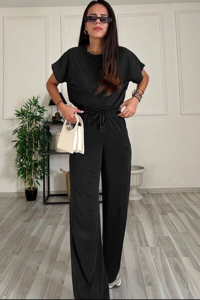 Round Neck Short Sleeve Top and Drawstring Pants Set