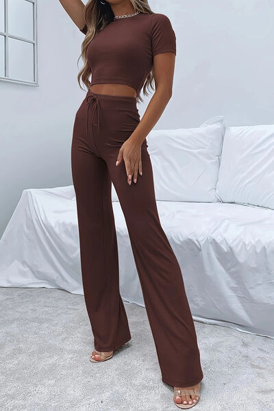 Round Neck Short Sleeve Top and Pants Set