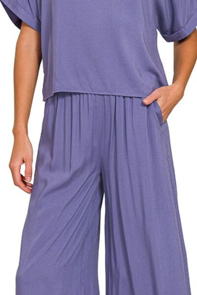 Round Neck T-Shirt and Wide Leg Pants Set