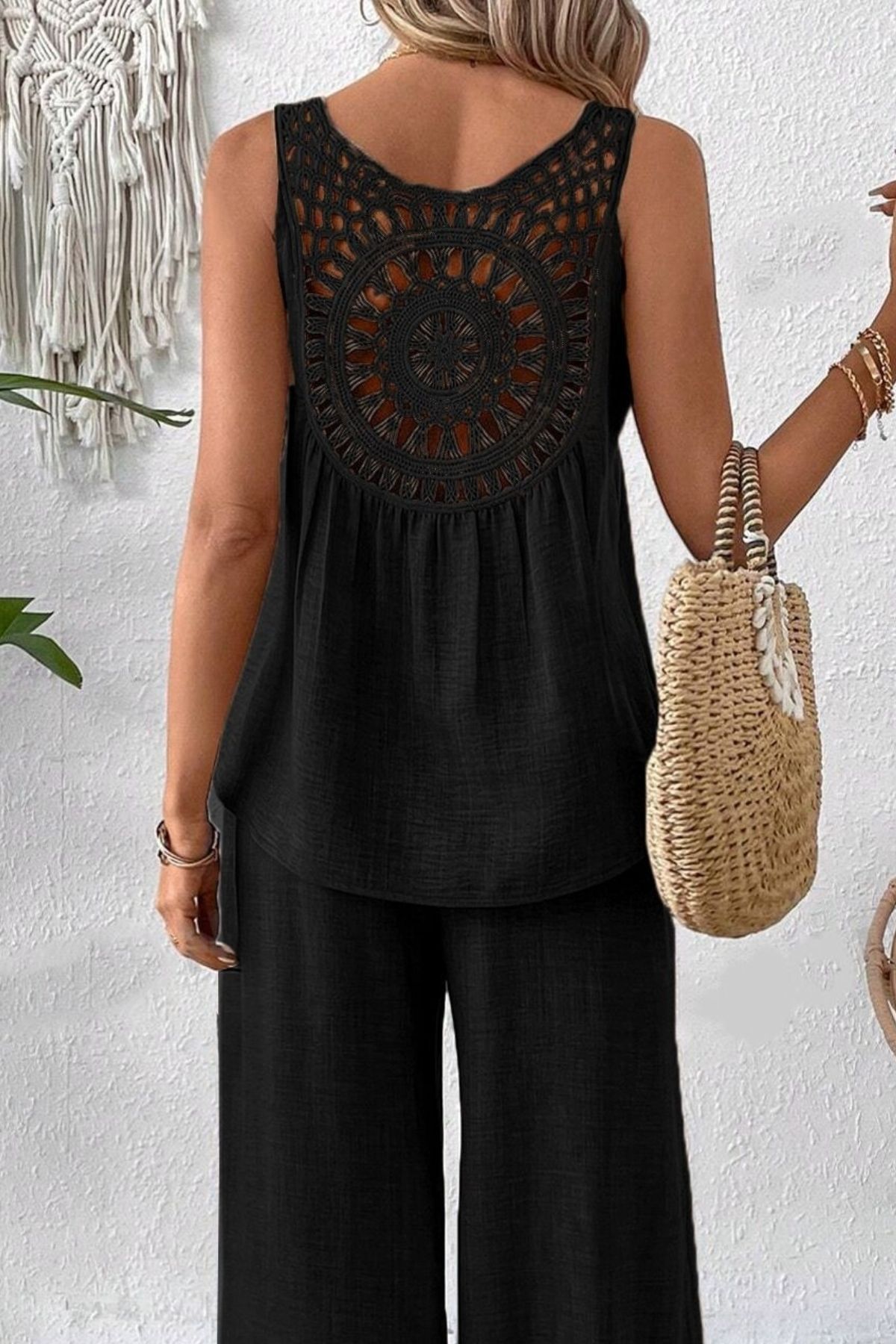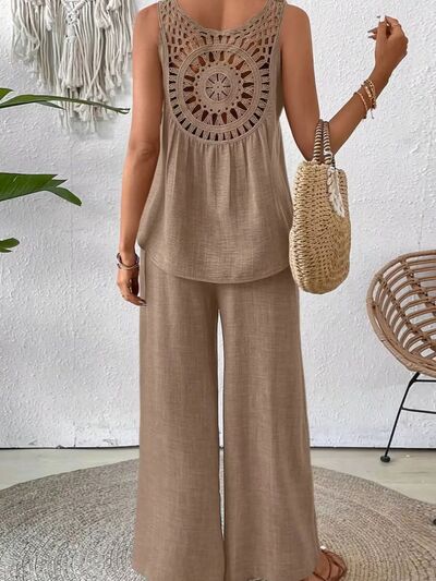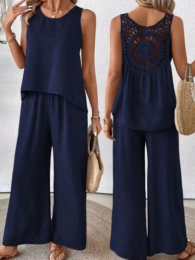Round Neck Tank and Wide Leg Pants Set