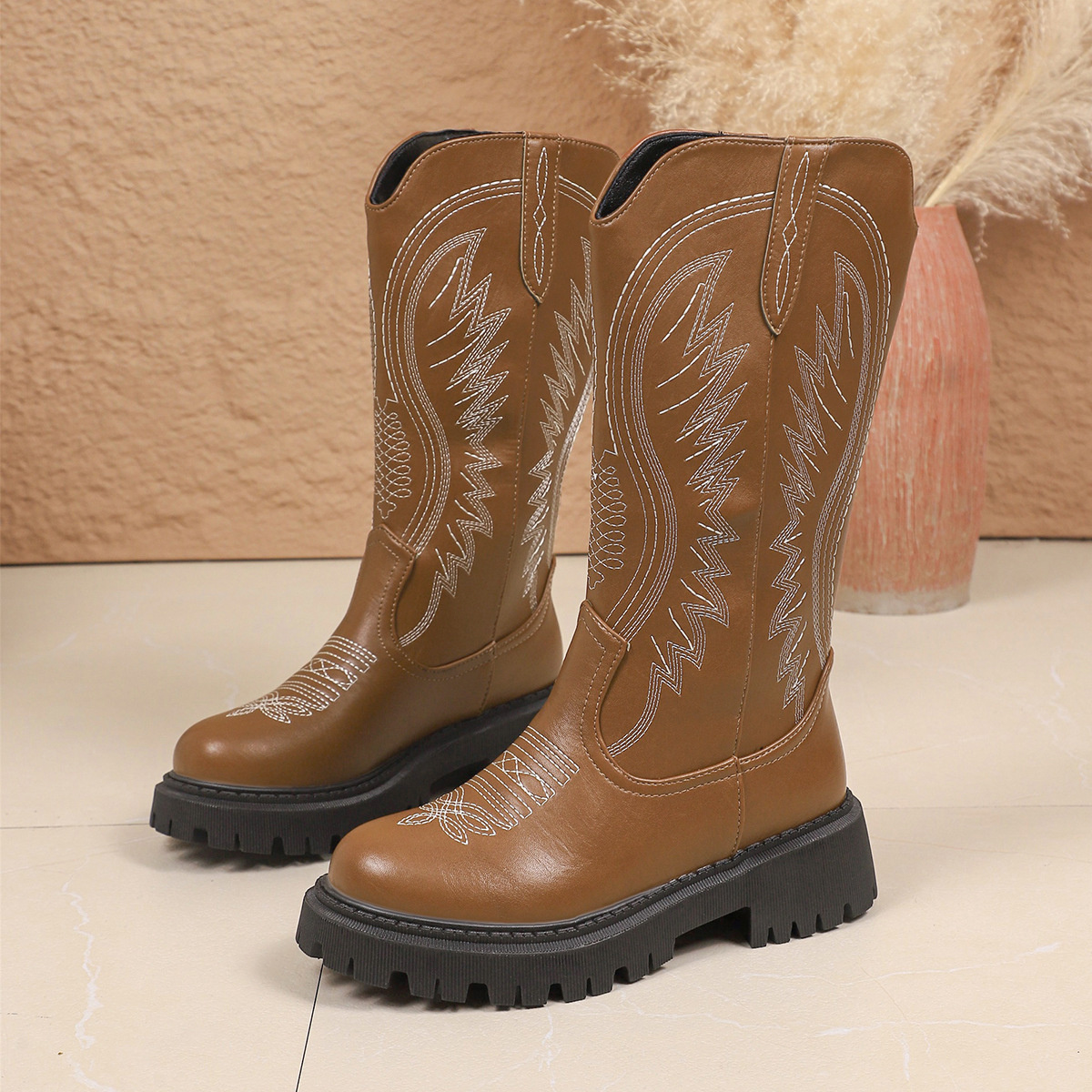 Round Toe Block Heels Boots