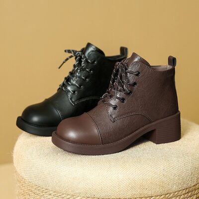 Round Toe Block Heels Boots