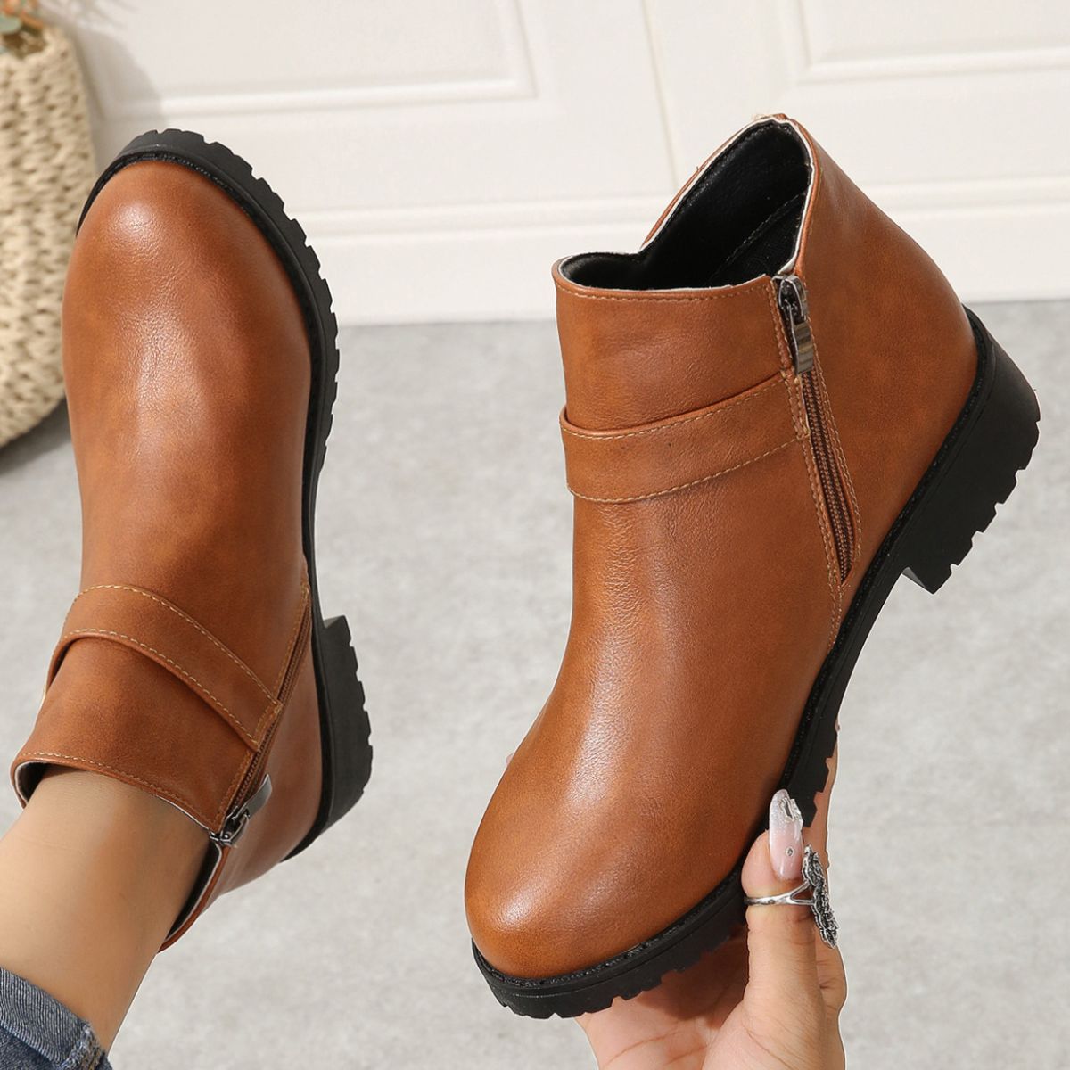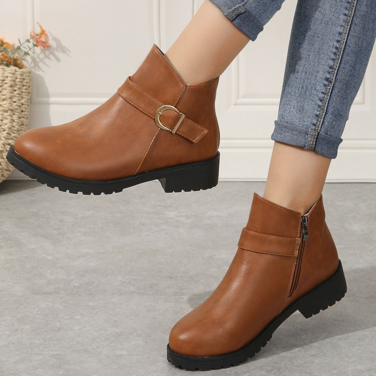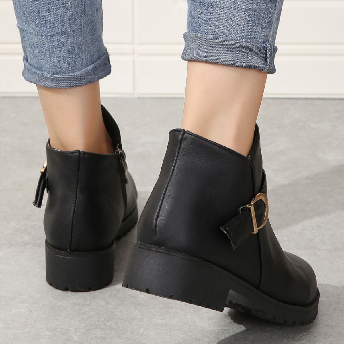 Round Toe Block Heels Boots