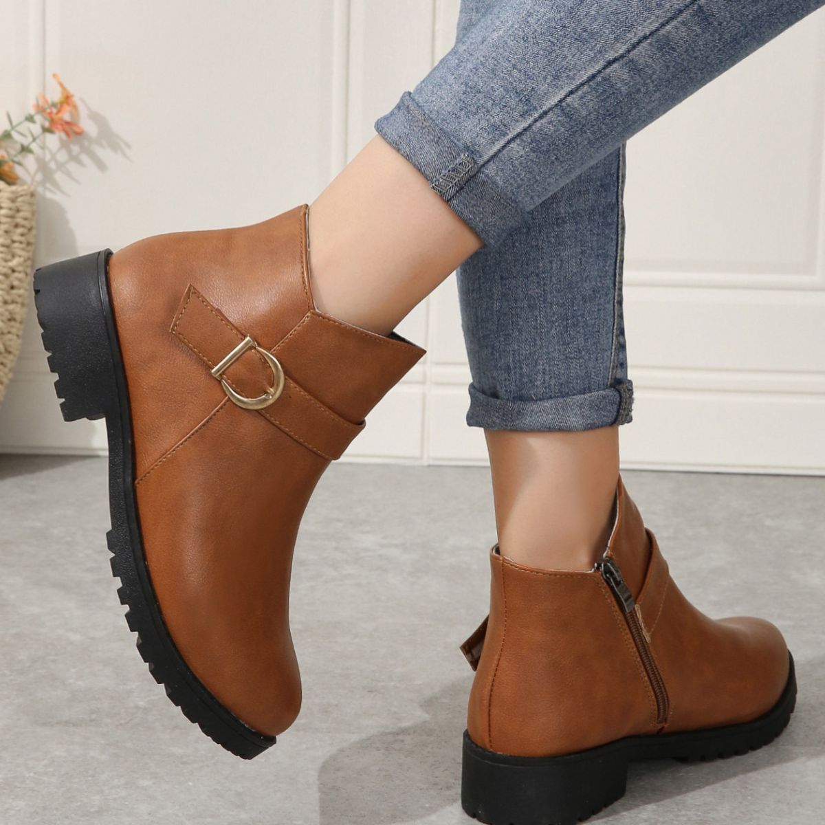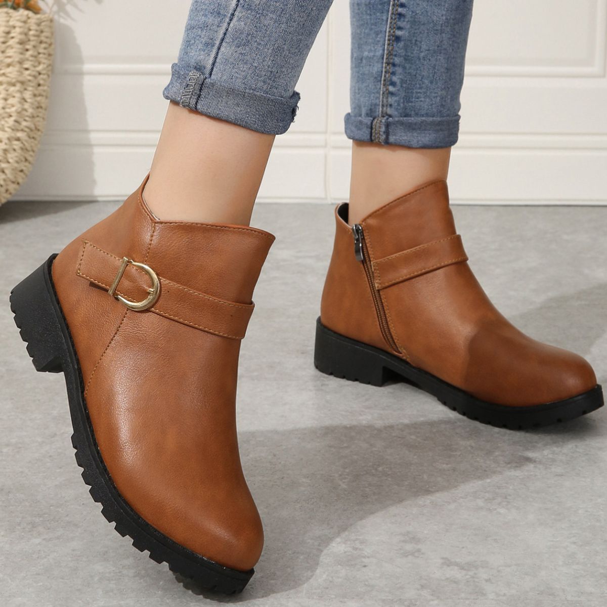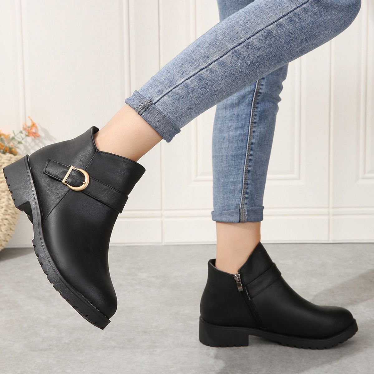 Round Toe Block Heels Boots