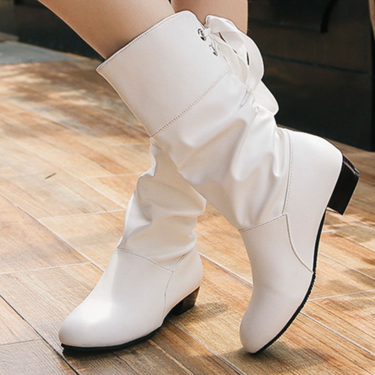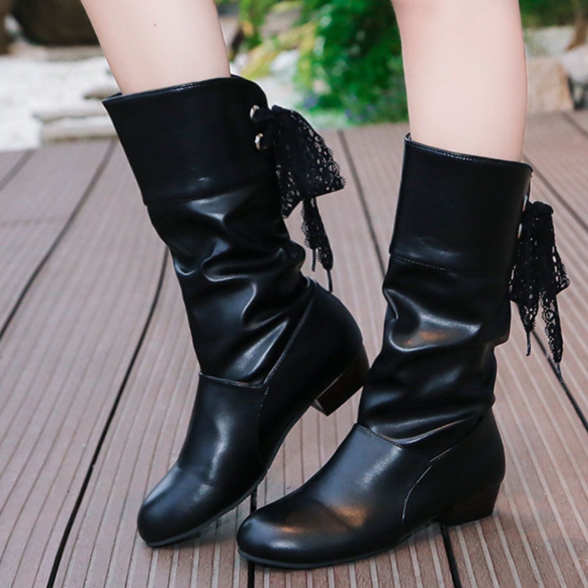 Round Toe Block Heels Boots