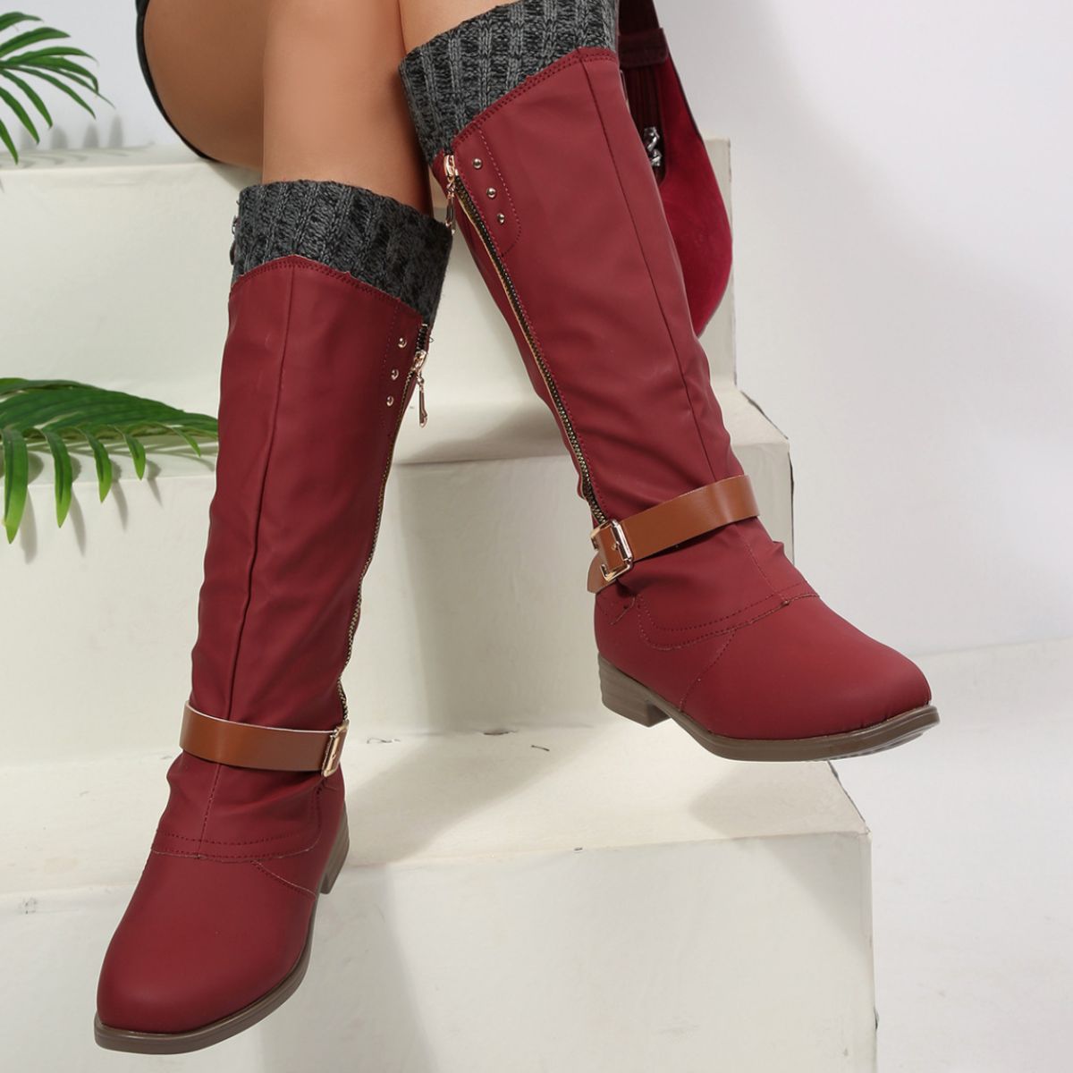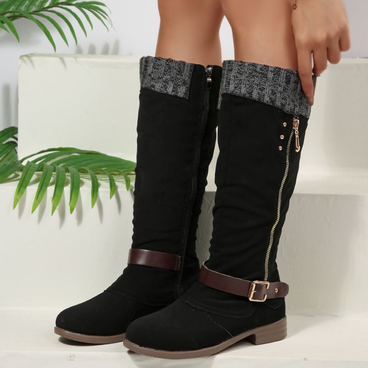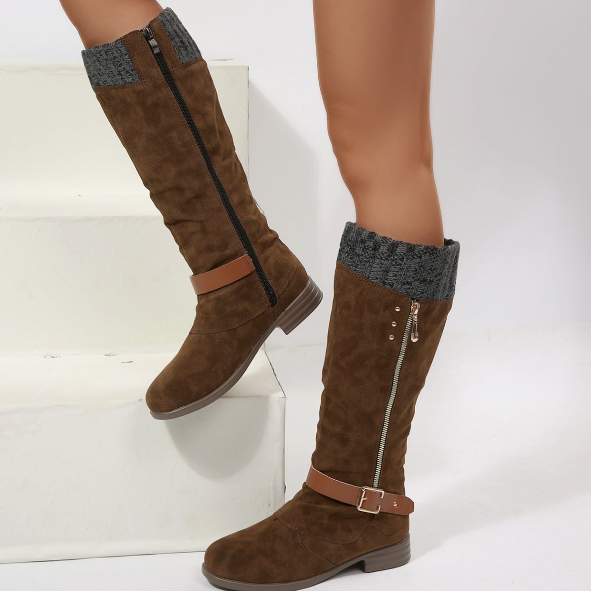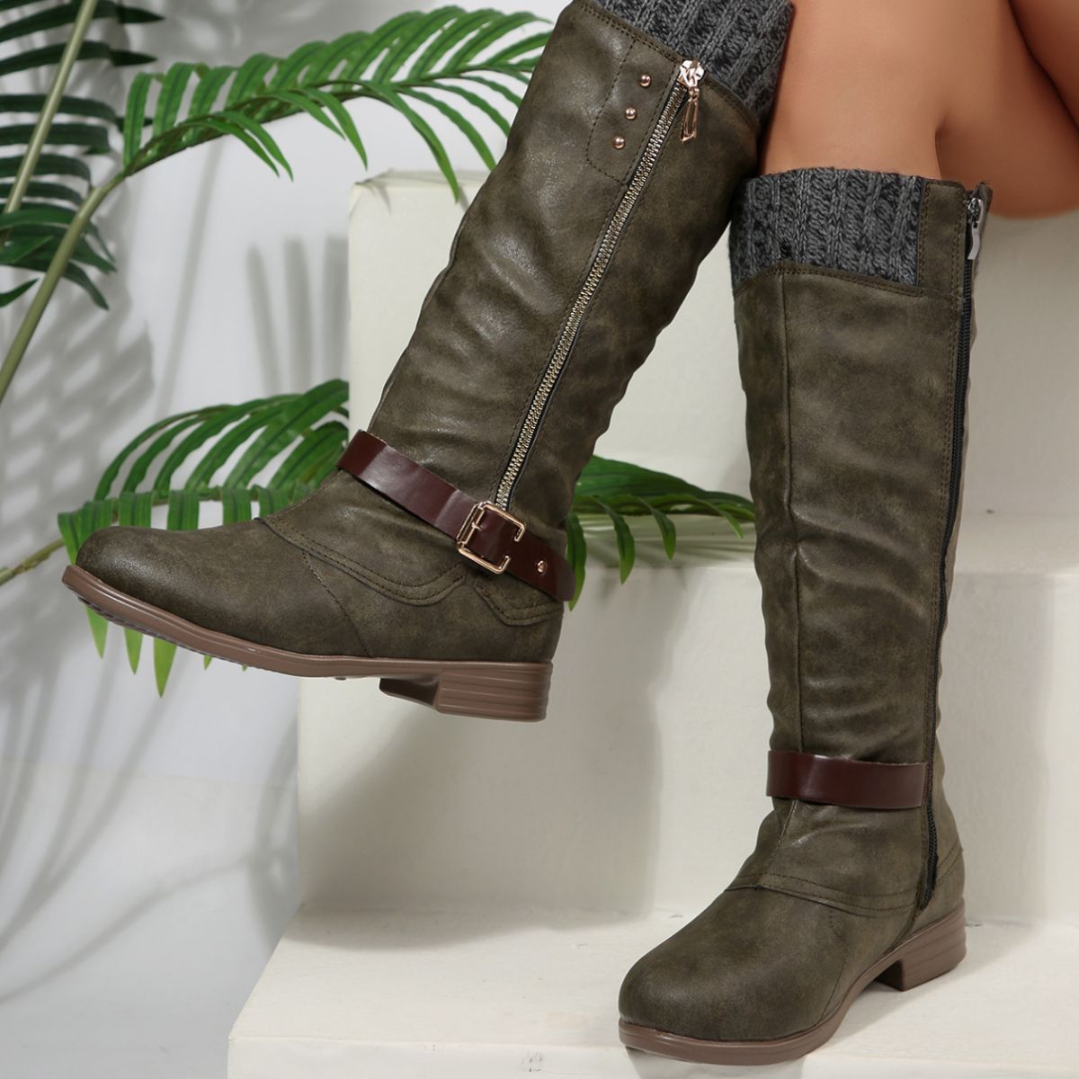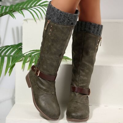 Round Toe Block Heels Boots